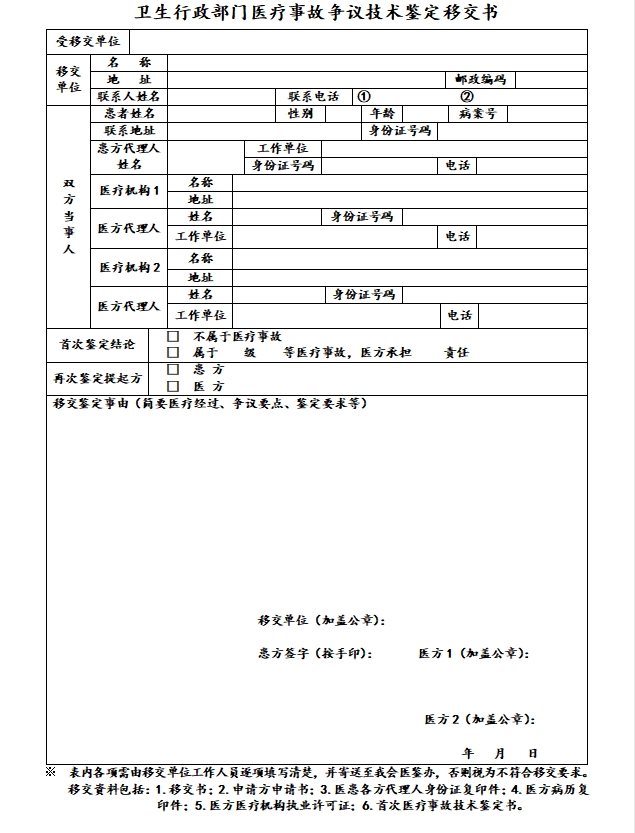 卫生行政部门移交书(两所医疗机构)